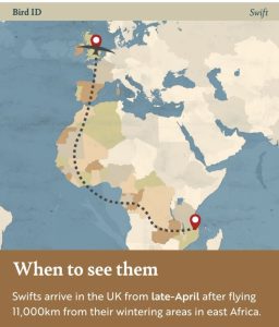 Many of us enjoy hearing the uplifting screams of swooping swifts that fill our skies in the summer months. Did you know that swifts migrate all the way from the Congo in West Africa to nest and breed right here in Eastleigh?
